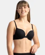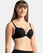 Black Padded Wired Super Combed Cotton Elastane Stretch Medium Coverage Pushup Bra