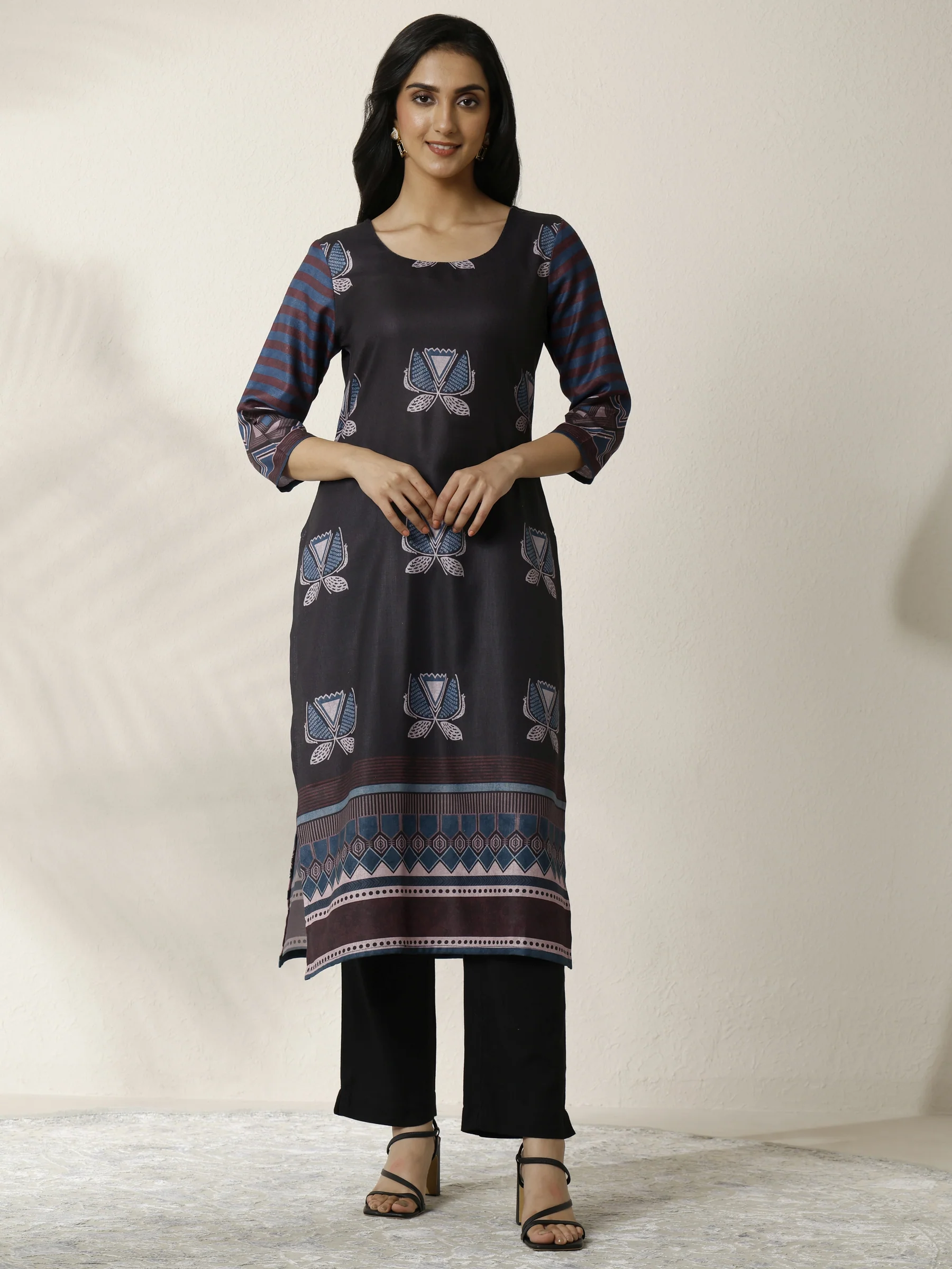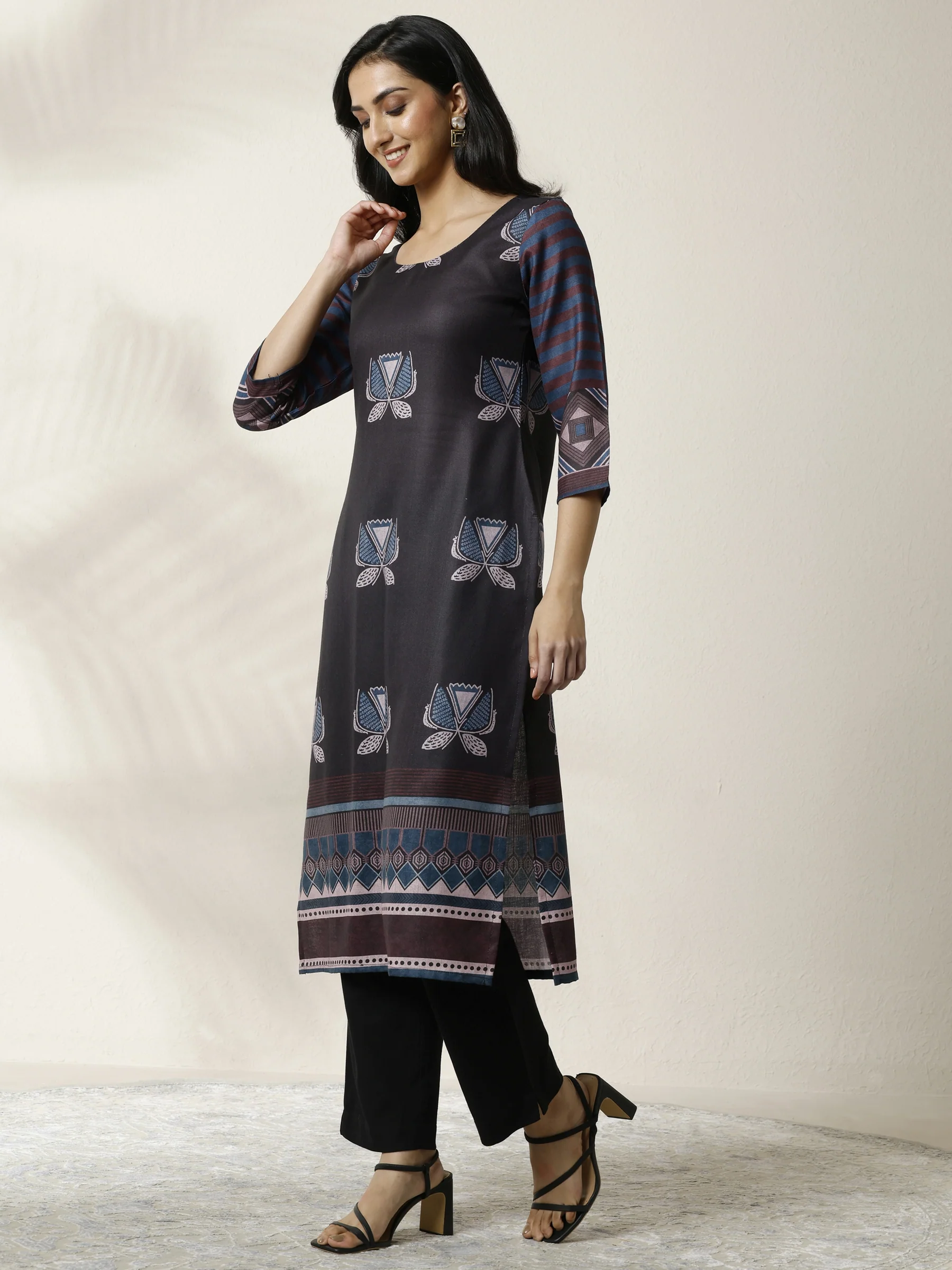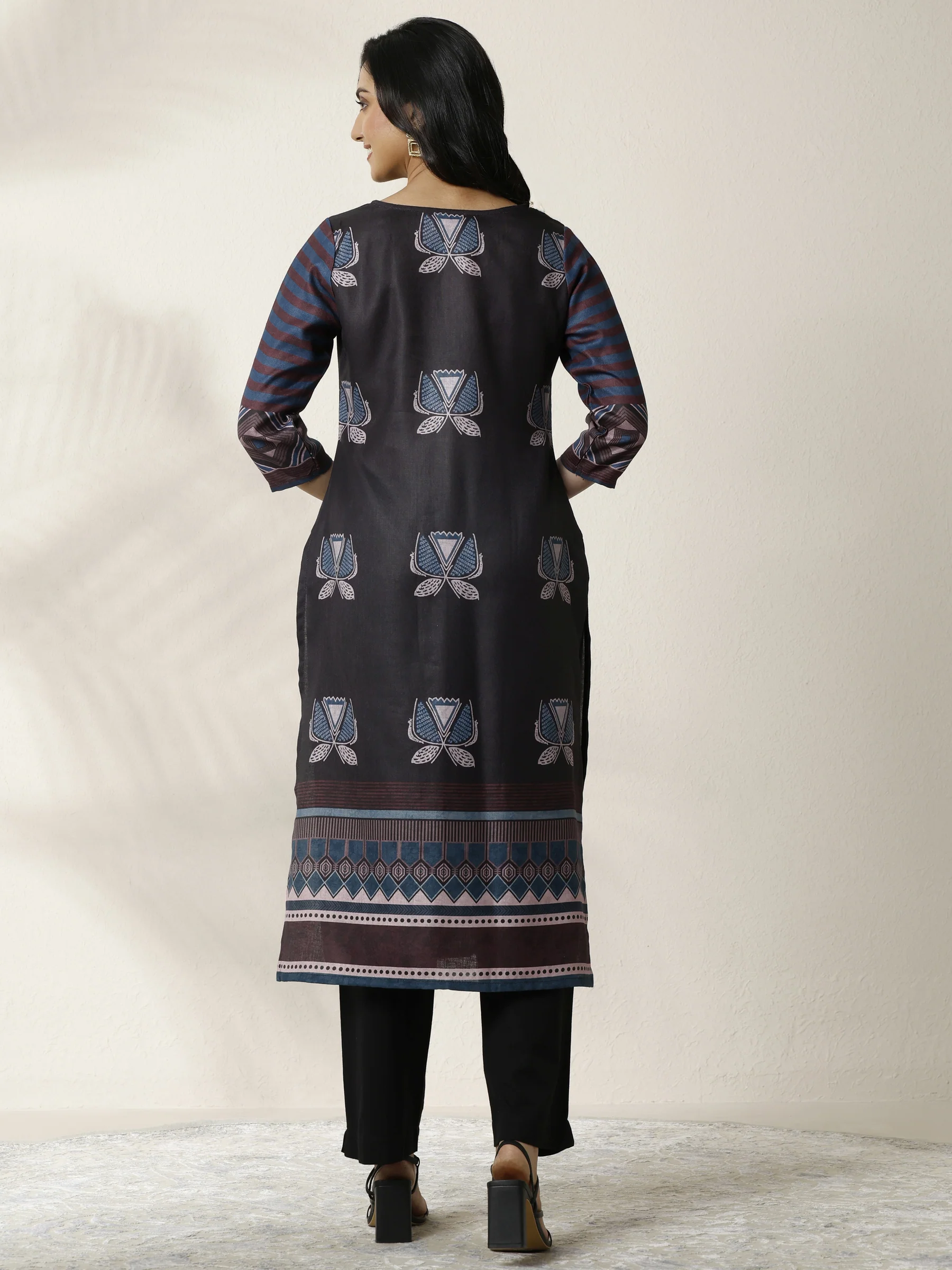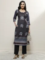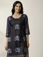 Black Printed Cotton Blend Straight Kurta