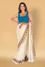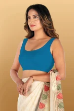 Blue Silk Sleeveless V Neck Benarasi Blouse