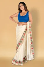 Malika x Rozaana | Deep Neck Saree Blouse in Ecru Beige Linen