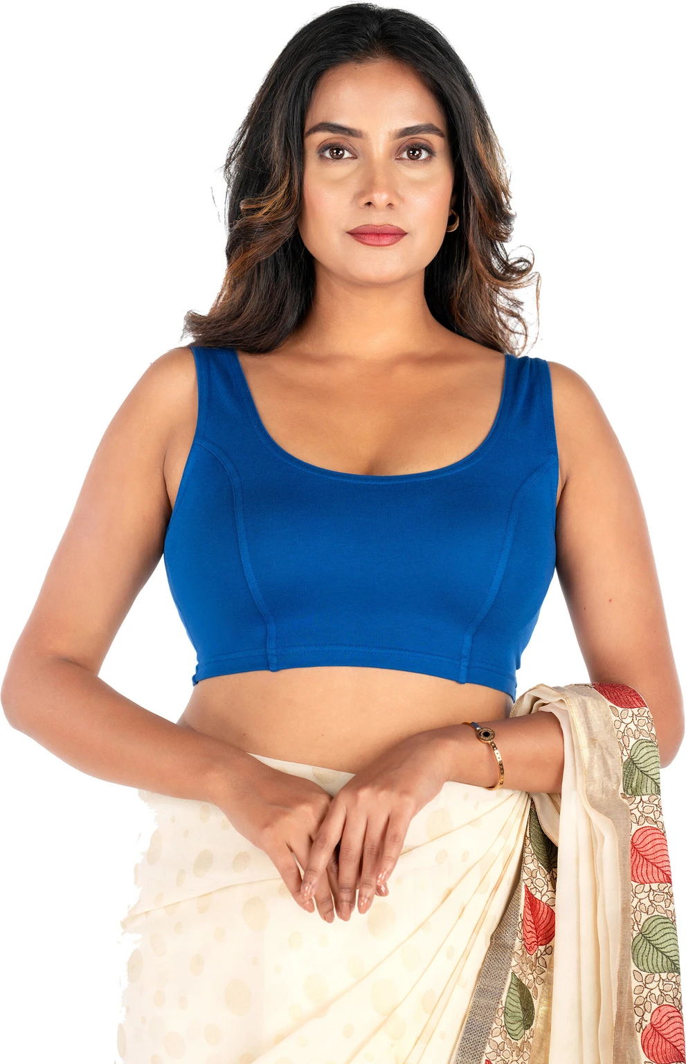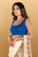 Blue Silk Sleeveless V Neck Benarasi Blouse