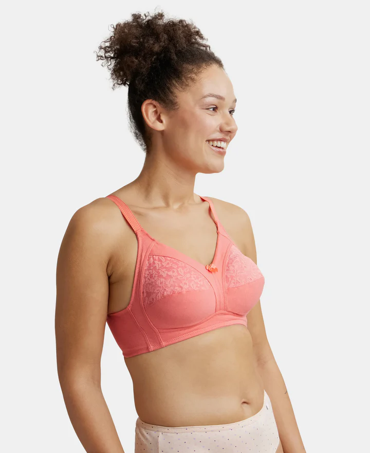 Home Bra Non Padded Bra Blush Pink Non Padded Super Combed Cotton Elastane Stretch Full Coverage Plus Size Bra