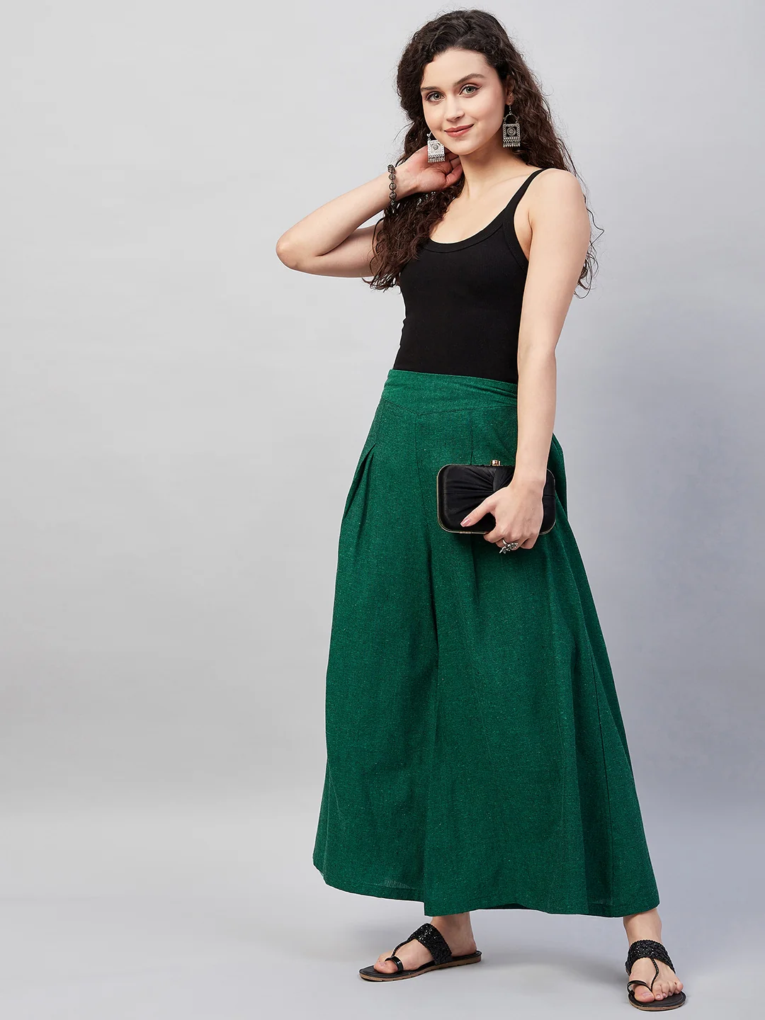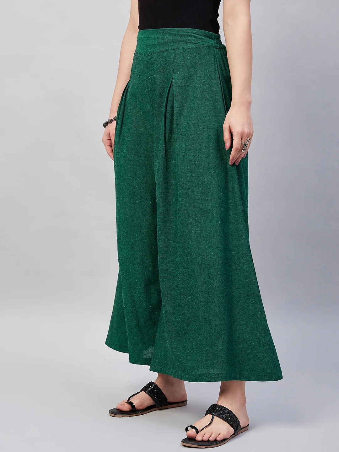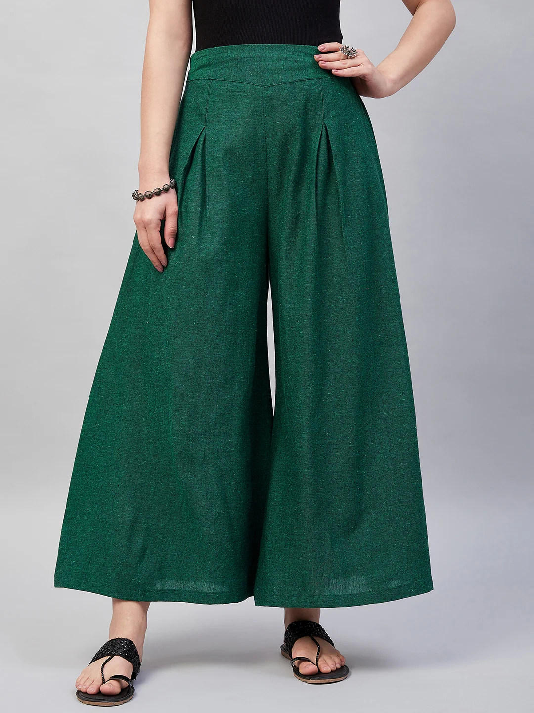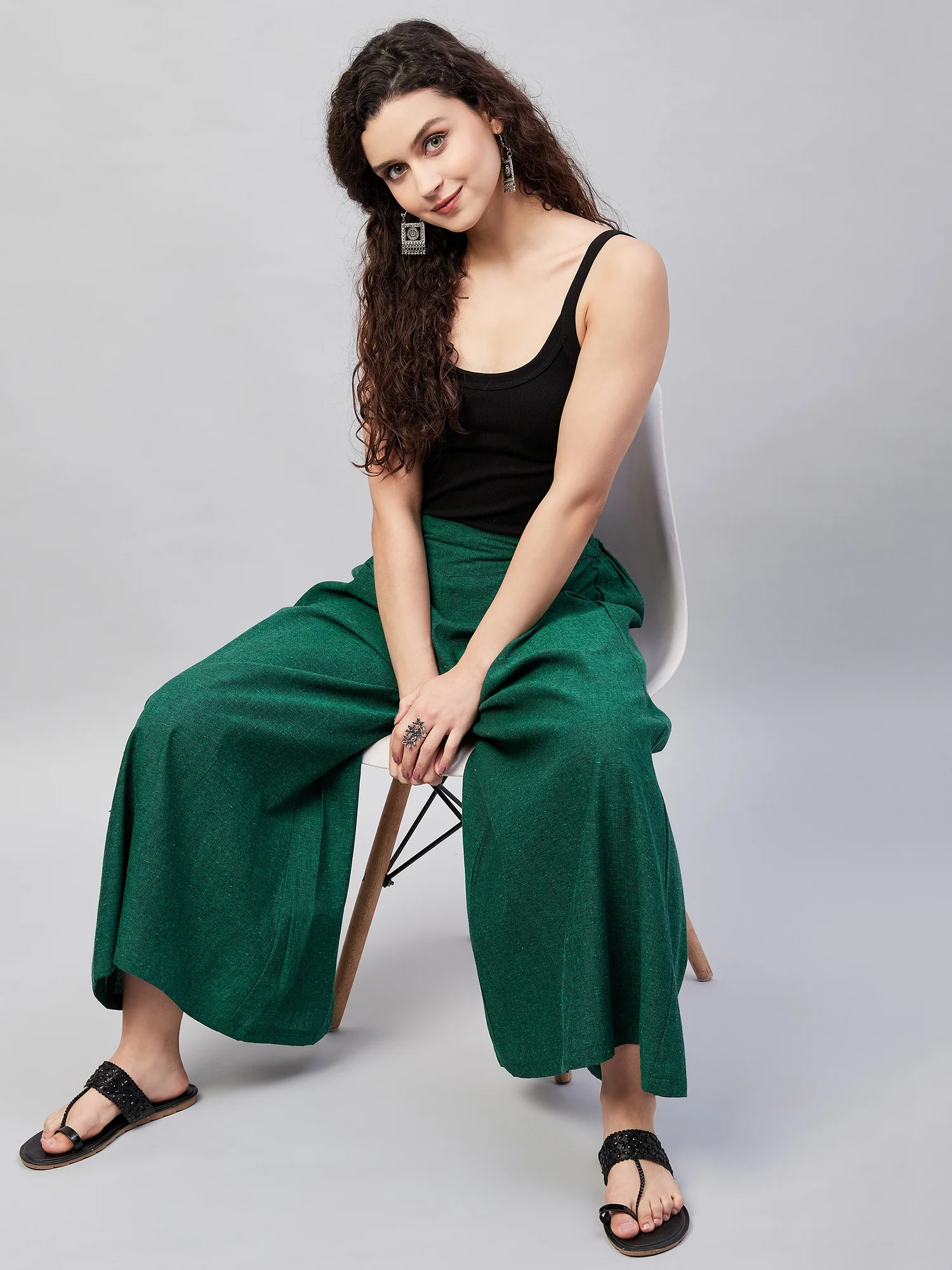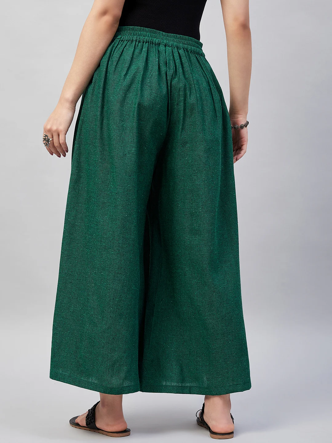Home Palazzos & Pants Palazzos Bottle Green Smart Casual Handloom Palazzo