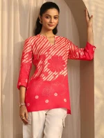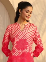 Our 1-piece Red Muslin Straight-fit kurta features a mandarin collar, Regular Sleeves, and a statement Yoke. Adorned with floral Print, this style is perfect for workwear and Casual Wear.