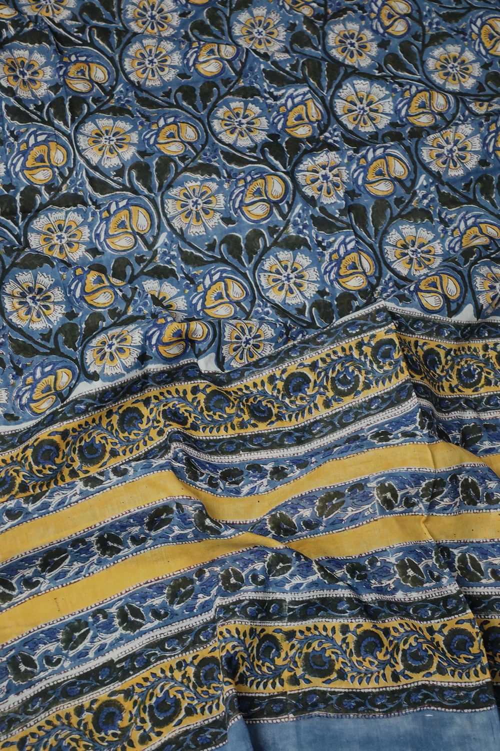 Green Florets on Blue Block Printed Mul Cotton Dupatta ₹1,000.00 Incl GST.
