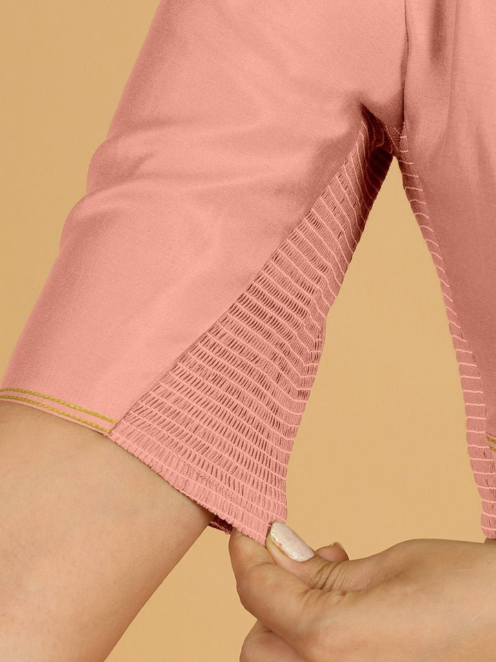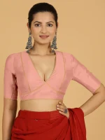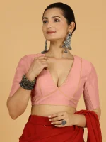 Erum x Rozaana | Elbow Sleeves Saree Blouse in Sea Pink