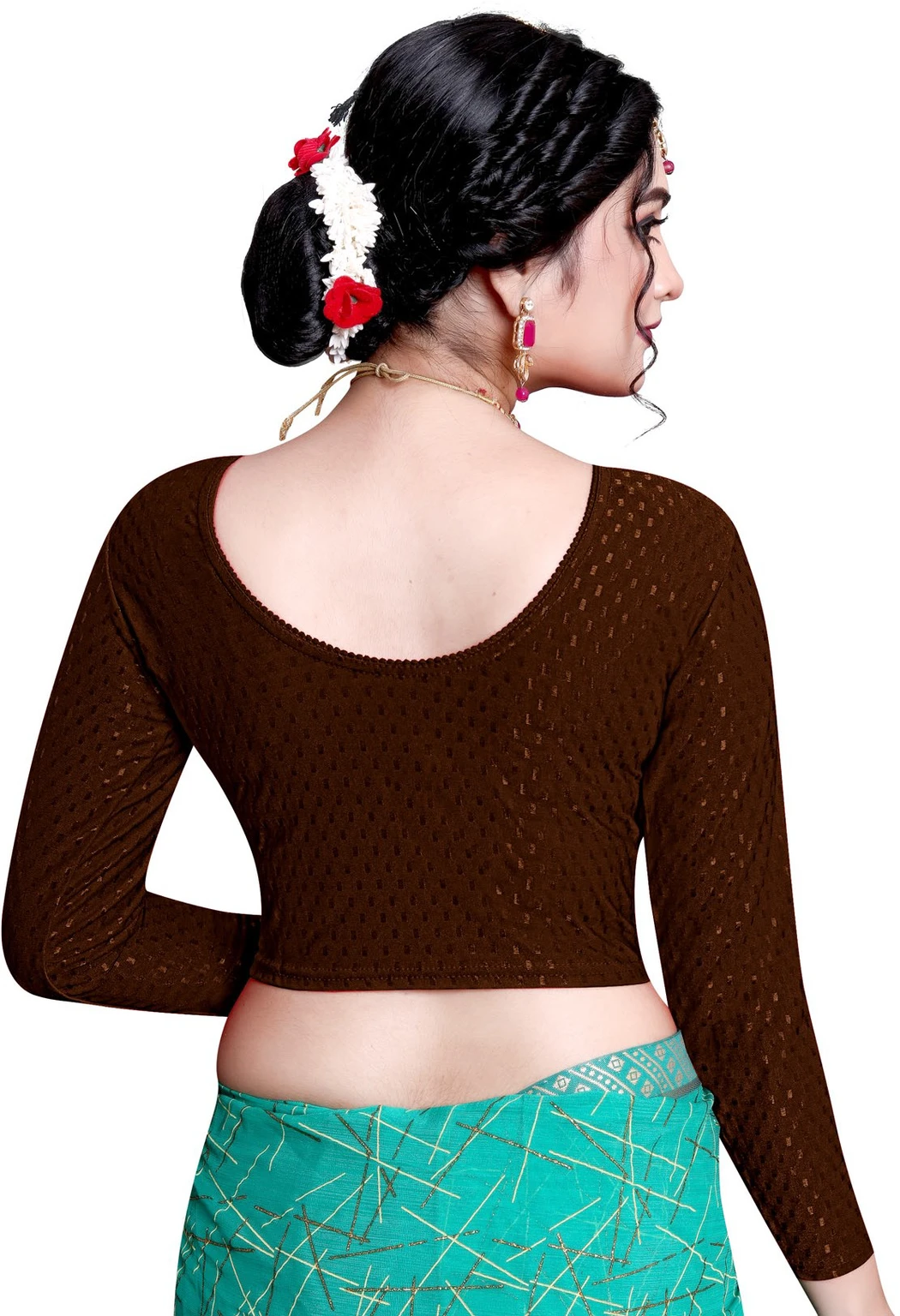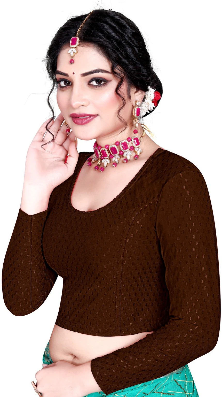 Elevate your wardrobe with this chic blouse crafted from stretchable Lycra fabric. The round neck design offers a classic and flattering silhouette, while the full sleeves provide a touch of elegance and versatility. The Lycra material ensures a comfortable, form-fitting shape that moves withyou, making it perfect for both casual and formal occasions. Embrace style and comfort with this must-have addition to your collection.