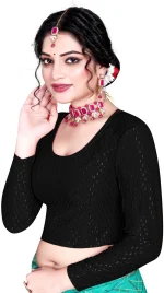 Elevate your wardrobe with this chic blouse crafted from stretchable Lycra fabric. The round neck design offers a classic and flattering silhouette, while the full sleeves provide a touch of elegance and versatility. The Lycra material ensures a comfortable, form-fitting shape that moves withyou, making it perfect for both casual and formal occasions. Embrace style and comfort with this must-have addition to your collection.