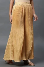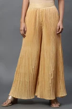 Home Palazzos & Pants Palazzos Gold Solid Flared Woven Sharara With Pleats