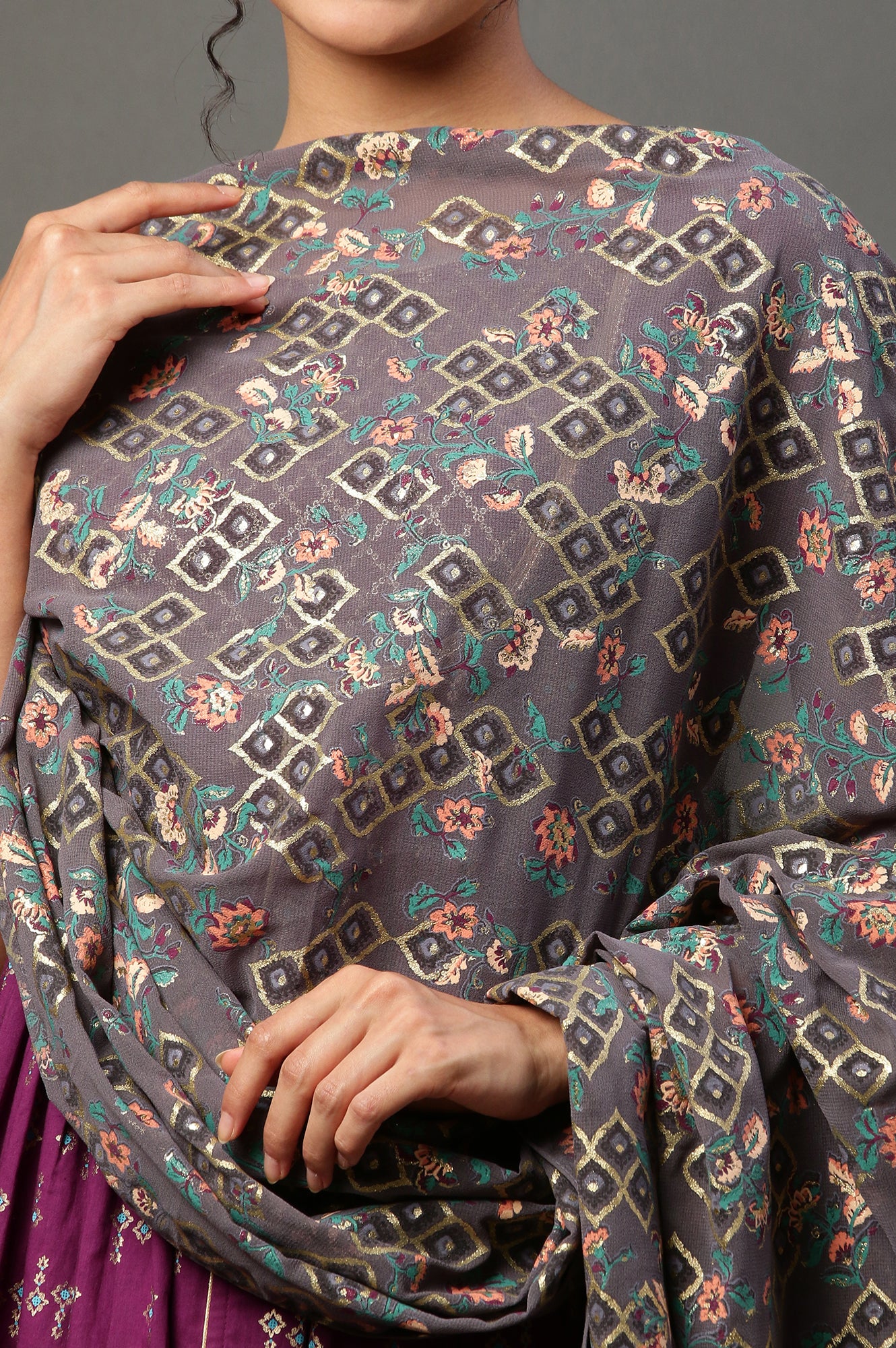 Home Dupatta Grey Georgette Festive Dupatta