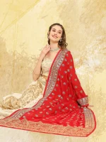 • This stunning georgette dupatta in vibrant colors can be used as a bridal Dupatta /Chunri to cover head and shoulders during functions and ceremonies. It can also be used to visit religious places and functions etc. This dupatta will be a wonderful addition to your wedding wardrobe.