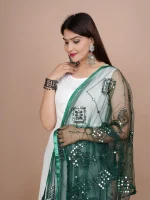Indian Bollywood Solid Designer Net Sequence Dupatta, Scarf, Shawl, Chunni Latest Wedding Women Dupatta with Matching Lace, Gift for Her