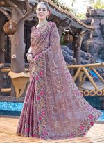 Lavender Organza Floral Embroidered Sequins Stone Embossed Saree Festive Wear