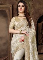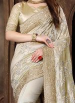 Light Beige Embroidered Saree Party Wear