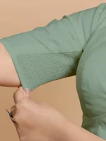 Malika x Rozaana | Deep Neck Saree Blouse in Peppermint Green Linen