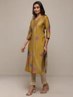 Mustard Floral Printed Silk Blend Straight Kurta