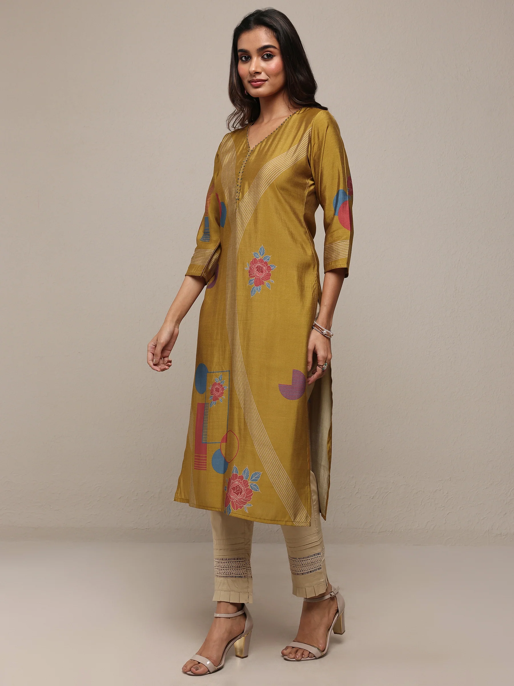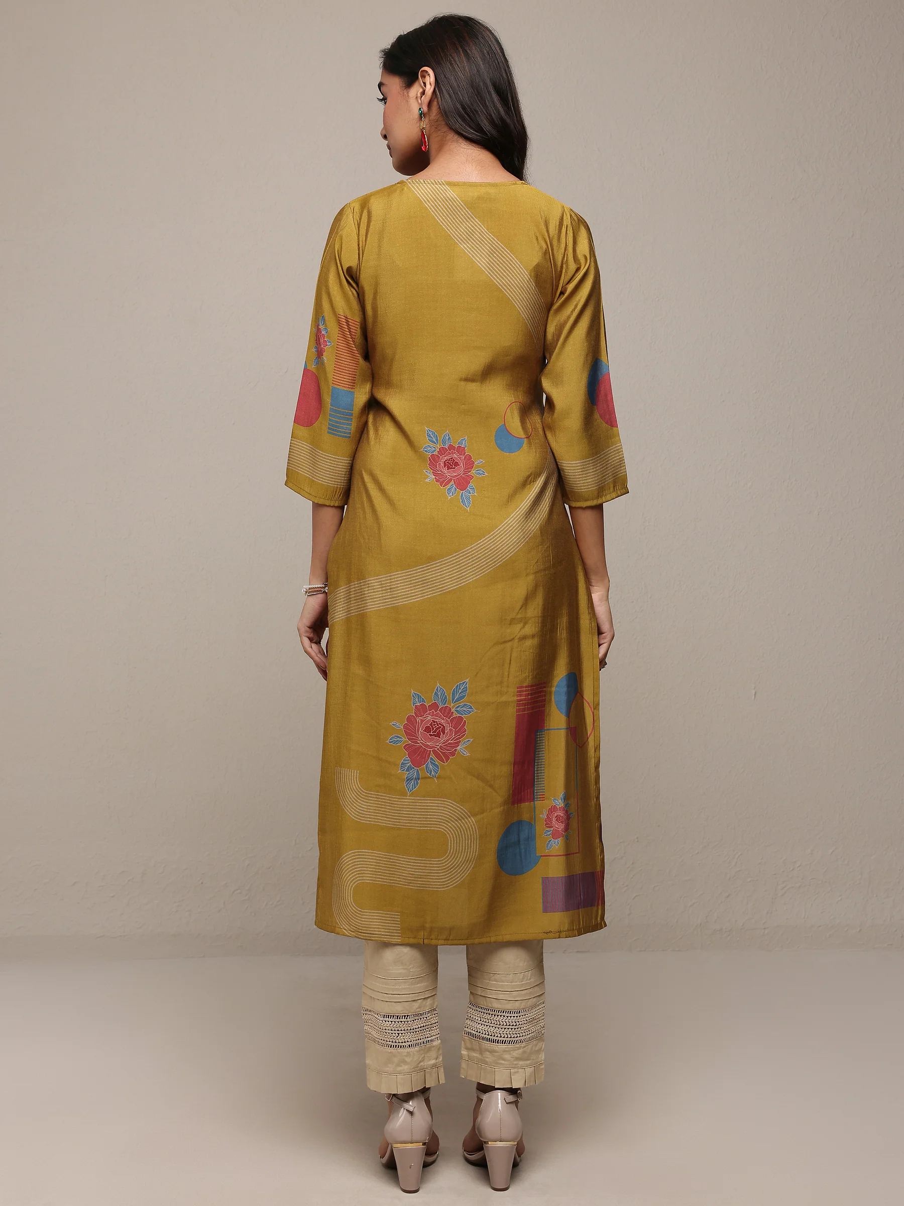 Mustard Printed Silk Blend Straight Kurta ₹1,200.00 Incl GST.