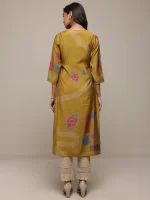 Mustard Printed Silk Blend Straight Kurta