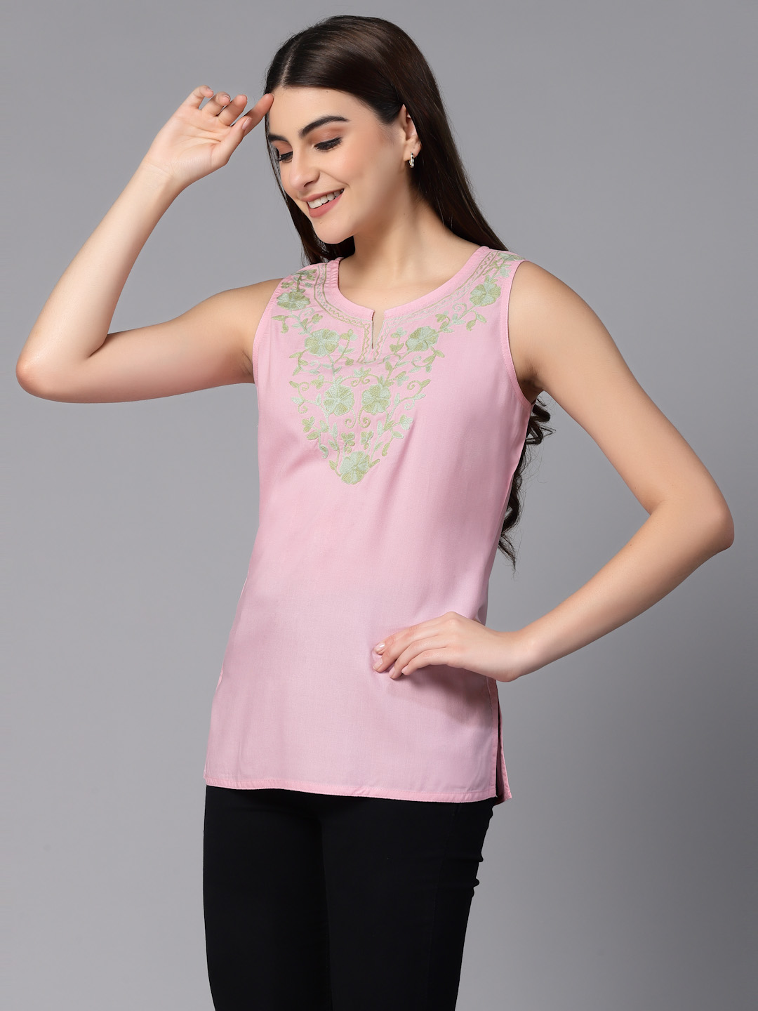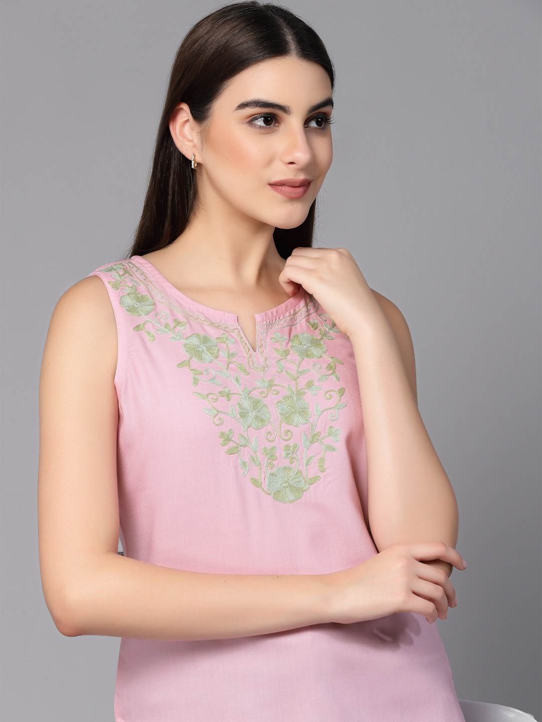 Home Short Kurtis Nadia Kashmiri Light Pink Sleeveless Kurti