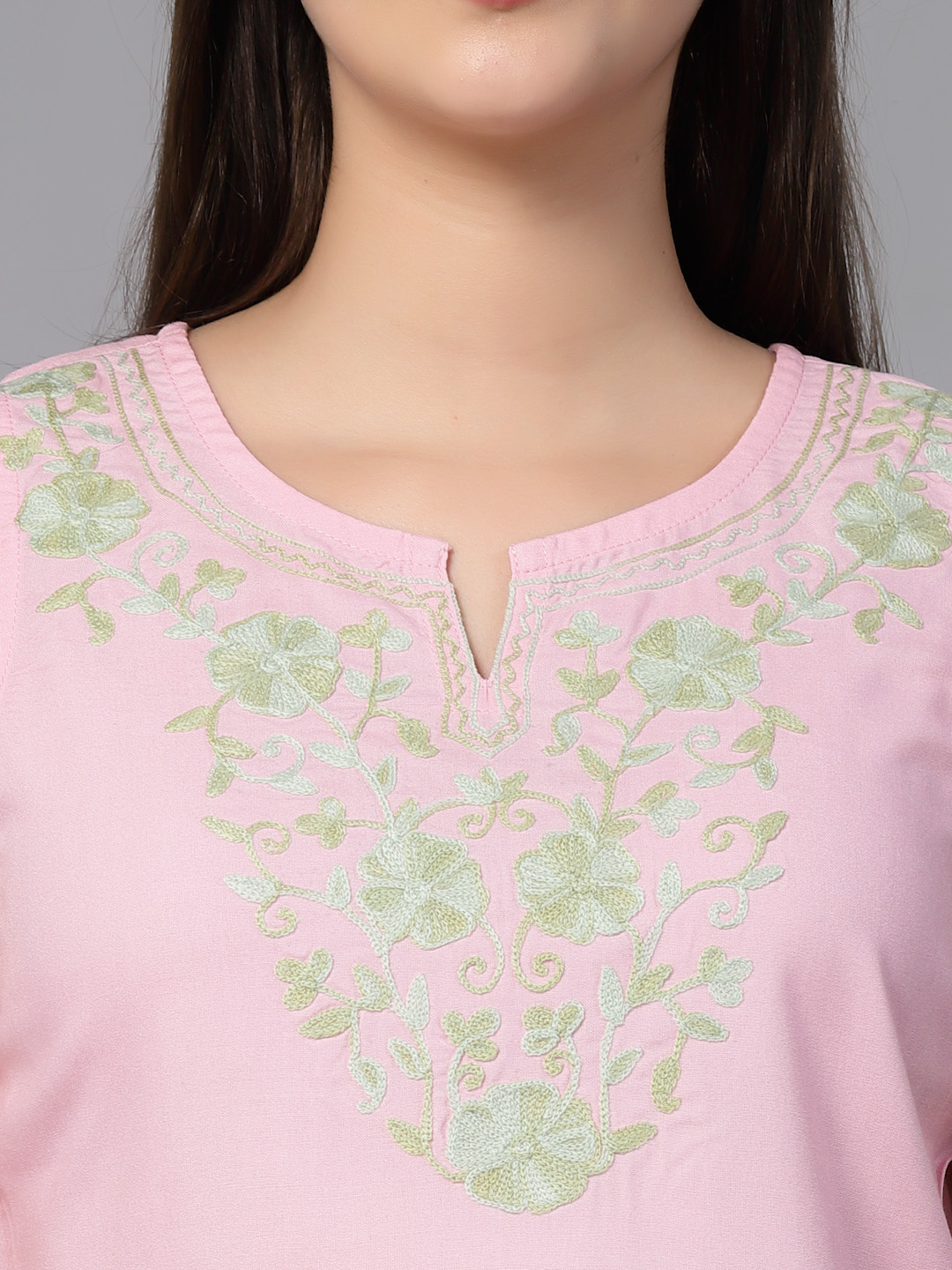 Falak Kashmiri Light Pink Kurti ₹700.00