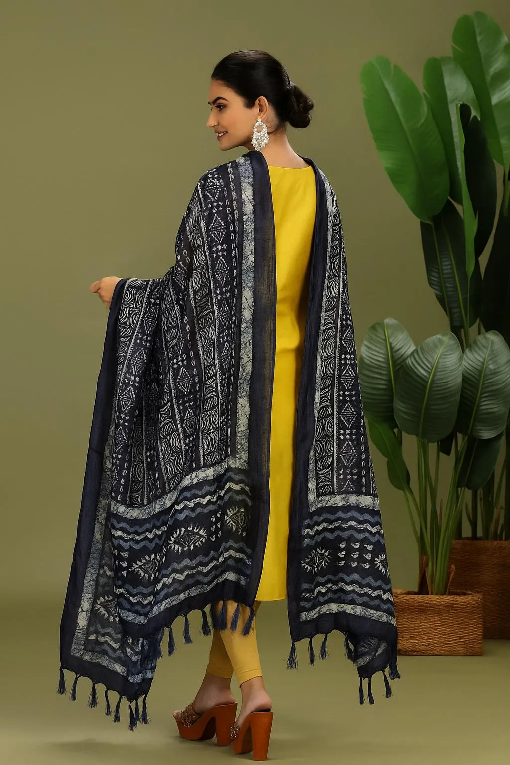 Home Dupatta Navy Blue Chiffon Handblock Printed Dupatta