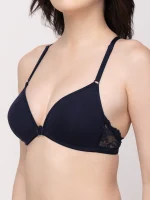 Home Bra Padded Bra Navy Blue Non-Wired Lightly Padded Medium Coverage Women’s Front-Open Bra