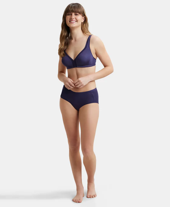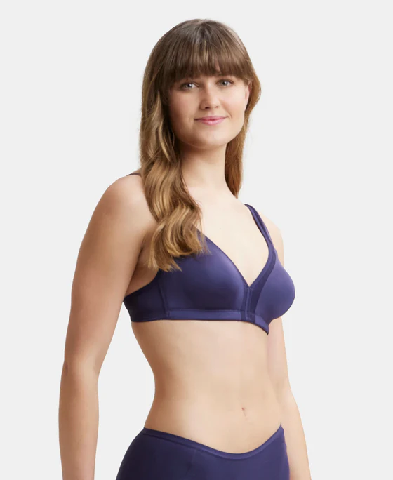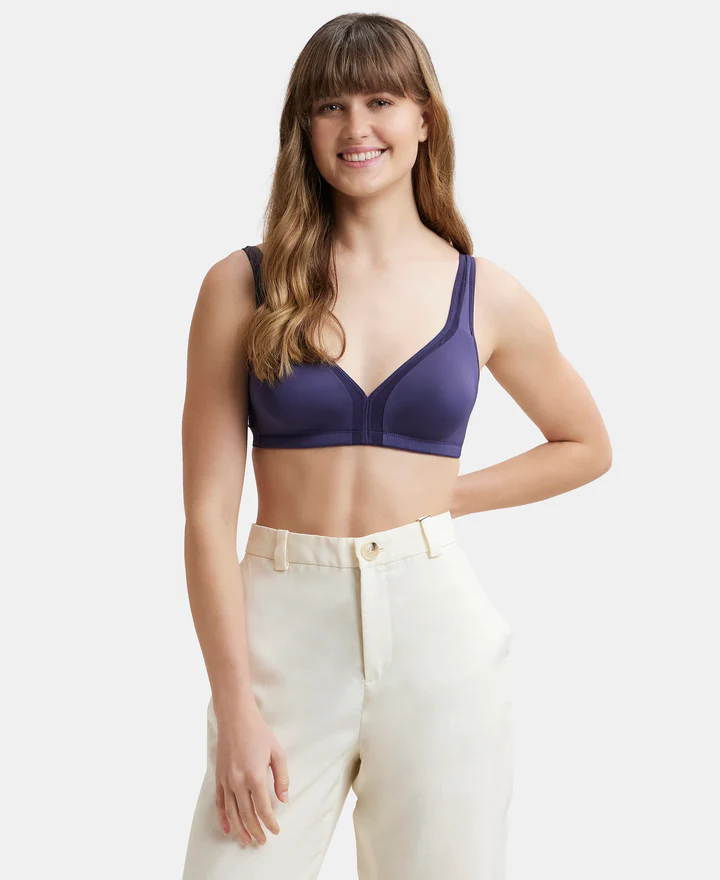 Wire free Non Padded Soft Touch Microfiber Elastane Stretch Full Coverage Everyday Bra with Stylized Mesh Panel