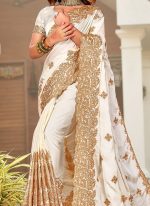 The Off White Satin Blend Embroidered Saree is a mesmerizing blend of tradition and contemporary design perfect for women who appreciate the elegance of Indian ethnic wear. Crafted with meticulous attention to detail this saree is a true embodiment of grace and sophistication. Made from a luxurious blend of satin and other highquality materials the saree exudes a subtle sheen that adds to its allure. The offwhite base colour serves as a canvas for the intricate embroidery allowing the vibrant thread work to pop and capture attention. The saree is adorned with exquisite embroidery that showcases the artistry and skill of Indian craftsmen. Intricate floral motifs delicate patterns and ornate borders are meticulously embroidered on the saree creating a harmonious blend of traditional aesthetics and modern appeal. The embroidery is done with precision using highquality threads that lend a rich texture to the fabric. The pallu the loose end of the saree is embellished with elaborate embroidery making it the focal point of the ensemble. The border of the saree features a complementary design enhancing the overall look and providing a perfect frame to the drape. The saree comes with an accompanying blouse piece made from the same satin blend fabric. The blouse piece is designed to complement the saree either mirroring the sarees embroidery or featuring a contrasting pattern to add a contemporary touch. Stitched to fit the blouse piece allows for a customized and comfortable fit. In summary the Off White Satin Blend Embroidered Saree is a masterpiece that embodies the essence of Indian craftsmanship. Its timeless design exquisite embroidery and highquality fabric make it a valuable addition to any womans wardrobe allowing her to make a statement at any special occasion.