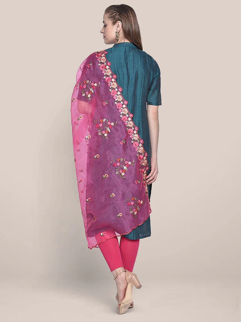 Organza Dupatta with Multicolor Floral Embroidery