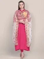 Let this season see you welcome the beauty of this organza dupatta to your ethnic fashion mix, showcasing eye some elegance and gorgeous grace! This alluring creation is adorned with beautiful multicolor floral embroidery all over. It will definitely give your feminine charm a hint of subdued elegance.