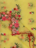 • This light weight organza dupatta is adorned with colorful embroidery all over along with scalloped borders .