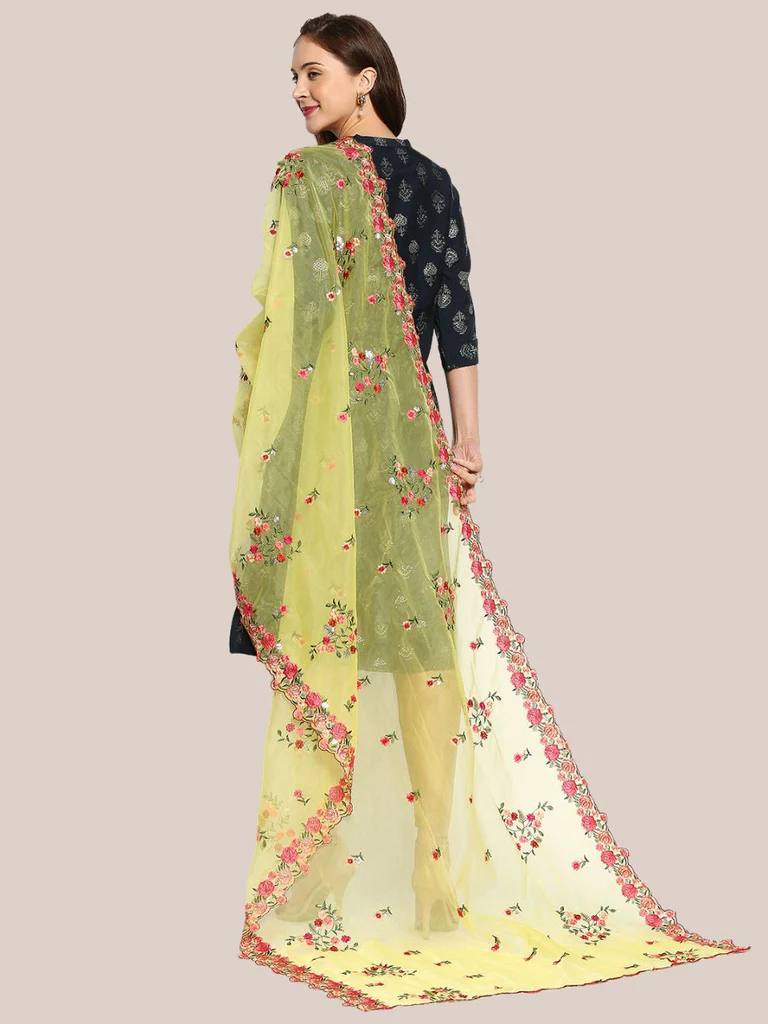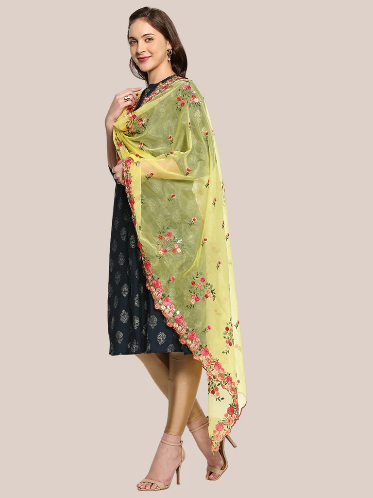 Organza Dupatta with Multicolor Floral Embroidery ₹300.00 Incl GST.