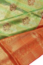 Home Saree Parrot Green Kanchipuram Tissue Silk Saree