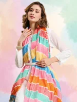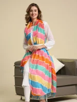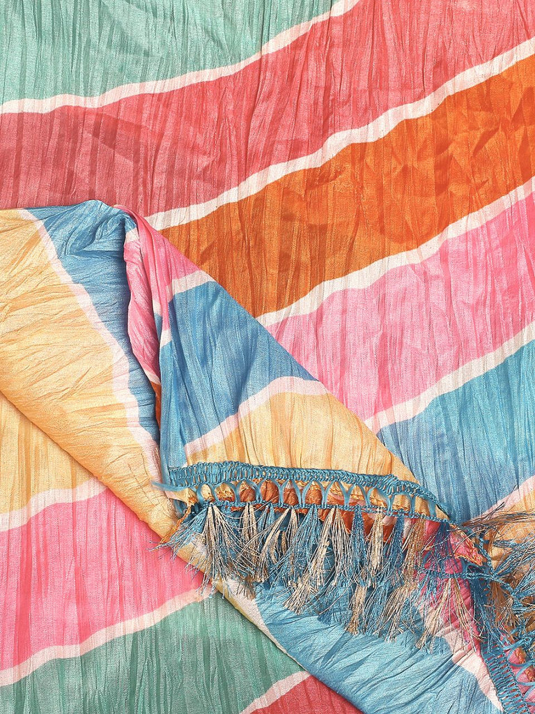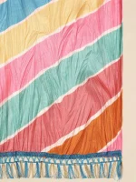 Home Dupatta Pastel Multicolored Striped Printed Art Silk Crushed Dupatta