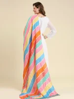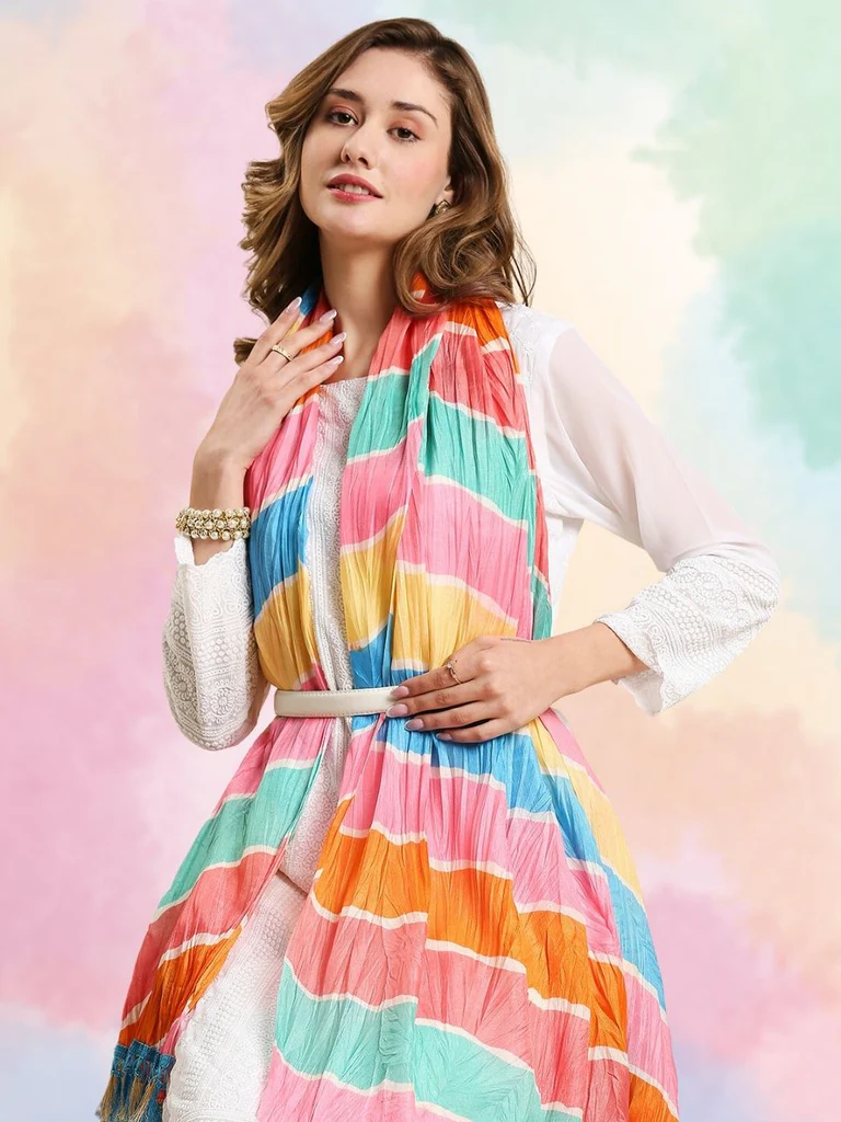 Pastel Multicolored Striped Printed Art Silk Crushed Dupatta