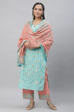 Home Dupatta Peach Printed Cotton Mulmul Stole