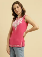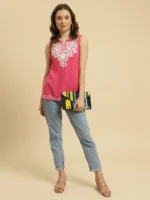 Pink Sleeveless Short Kurti