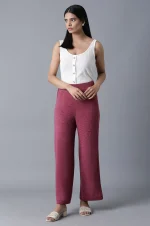 Pink Solid Straight Fit Palazzo With Elasticated Waistband