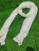 Plain White Chiffon Dupatta With Crochet lace Border