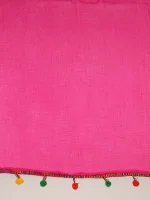 Home Dupatta Rani Pink Chiffon Dupatta with Multicolored Pompom Balls