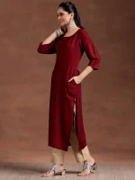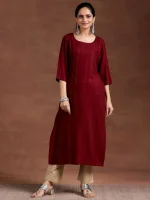 Red Woven Design Rayon Straight Kurta