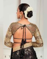 Half And Half Full Sleeve Blouse With Zari nd Sequins Embroidered Black Net and Velvet.