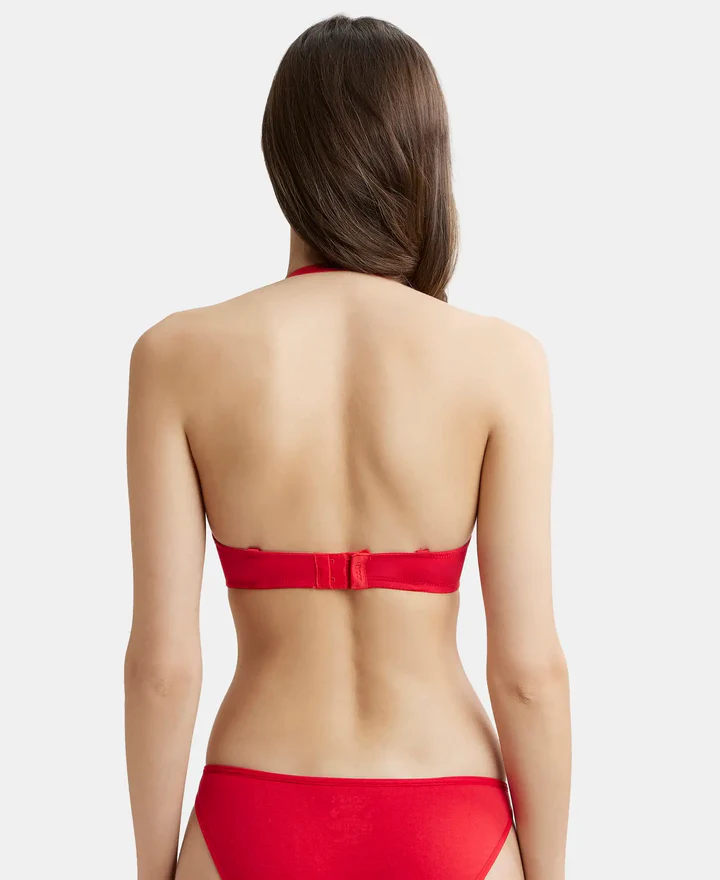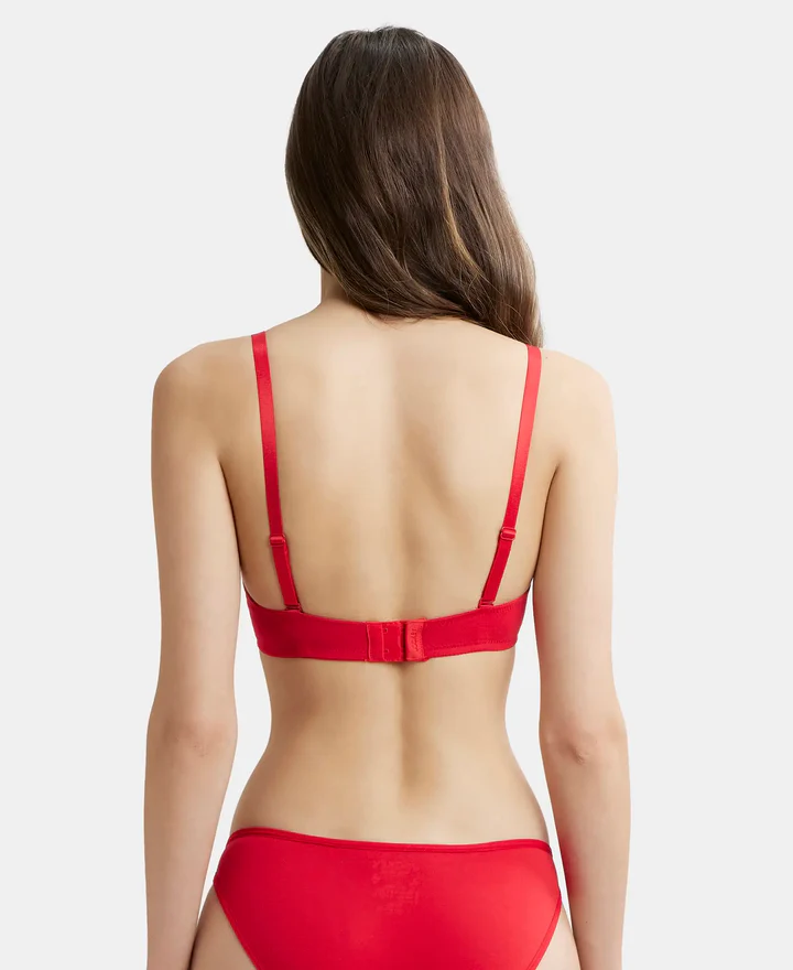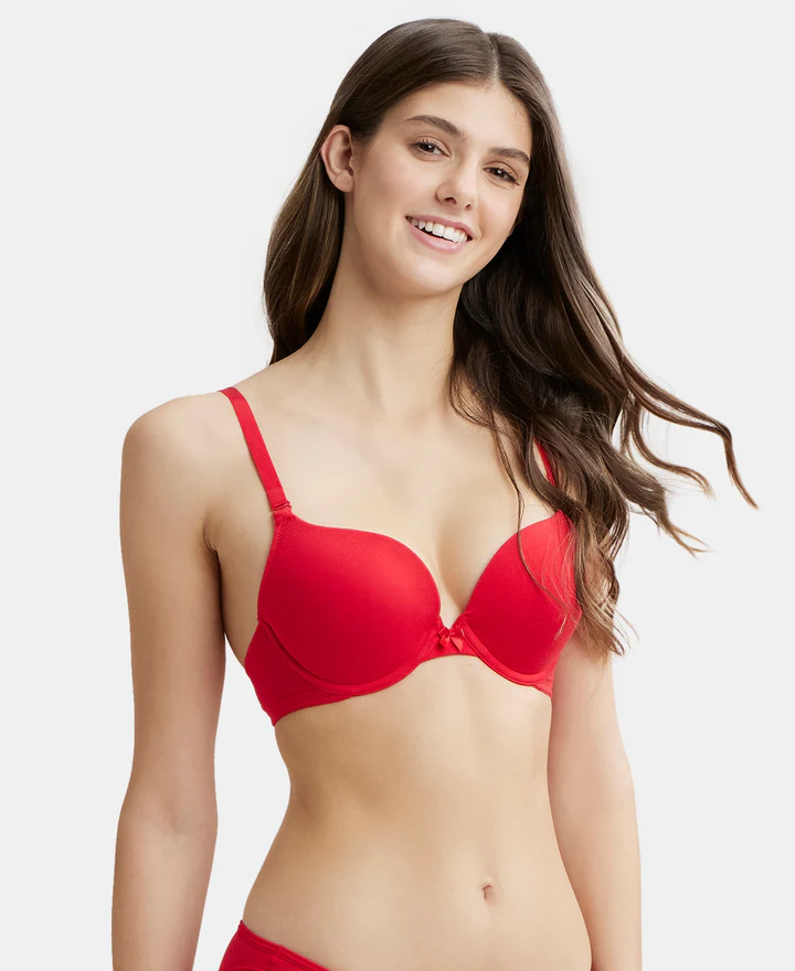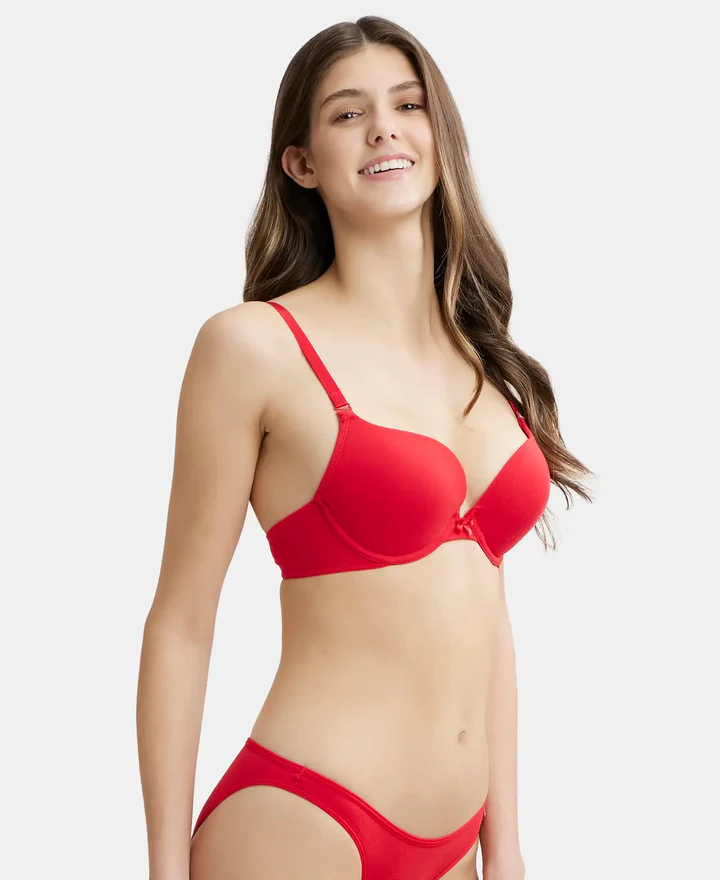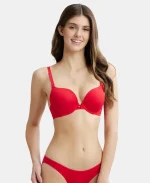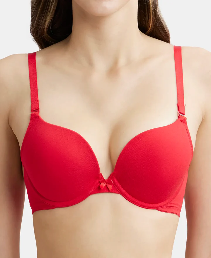 Home Bra Non Padded Bra Sangria Red Wired Padded Super Combed Cotton Elastane Stretch Medium Coverage Pushup Bra with Plunge Neck