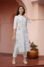 Co-ord set for women in airy white seer sucker fabric, this variation offers the same blend of elegance and comfort with a distinct finish. The kurta, designed with a modern silhouette, is paired with matching pants for a clean and minimal look. Ideal for casual outings, festive brunches, or small family gatherings, it is versatile and lightweight. The breathable texture of seer sucker ensures all-day comfort, especially in warm weather. Its timeless white shade allows for endless accessorizing, whether with bold jewelry or subtle accents. This co-ord set is a wardrobe staple that balances simplicity with elegance, making it perfect for women who love modern ethnic dressing.