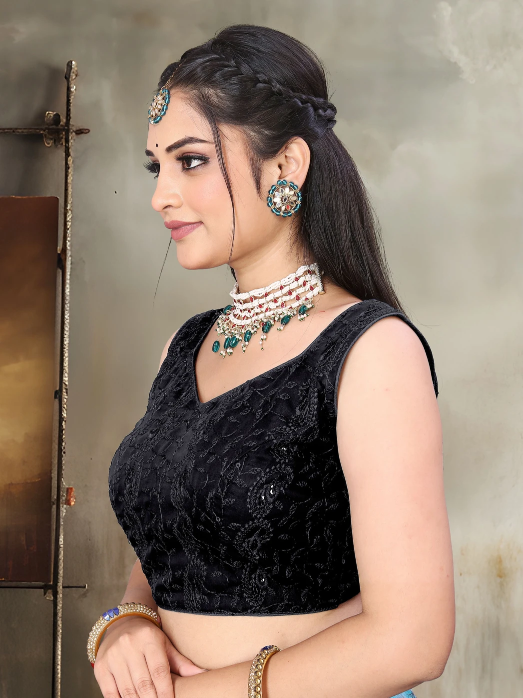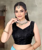Georgette sleeveless embroidered readymade blouse. Madefrom premium quality fabric. This blouse is extremely comfortable and a great choice for any season or festive season. This blouse has high-quality fabric; you can wear itwith a solid coloured saree. Sizes are from -30 to 36, if thesize seems a little smaller, then you can get the fitting done asper your requirement, a margin is given for that.