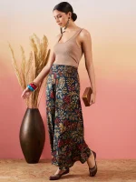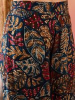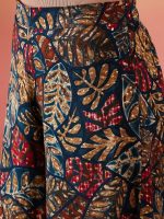 Teal Maroon Printed Leaf Print Foil Palazzo