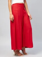 Home Palazzos & Pants Palazzos Viscose Rayon Solid Red Handloom Palazzo