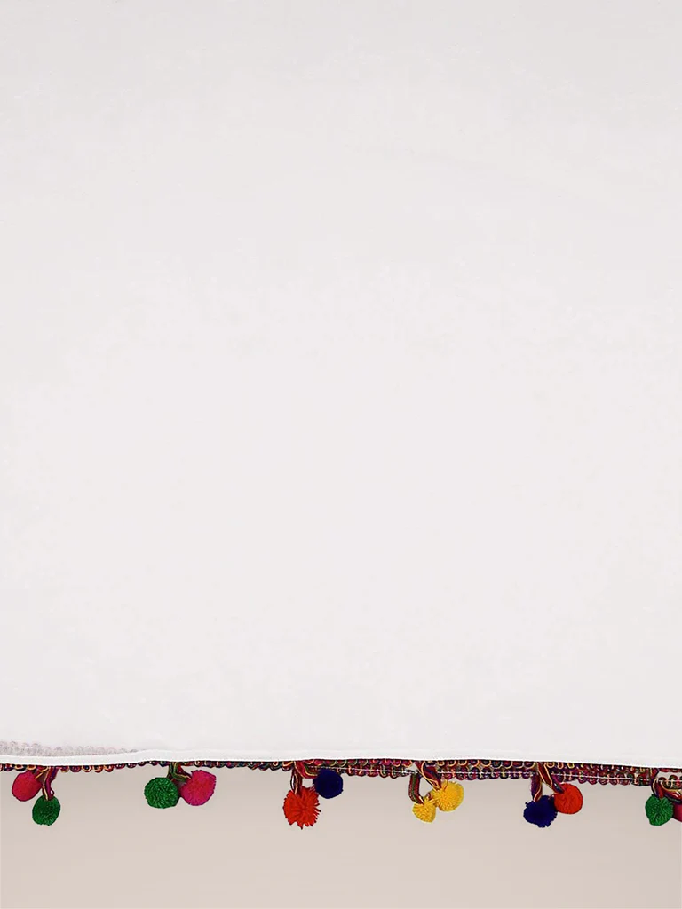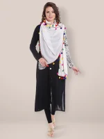 Home Dupatta White Chiffon Dupatta with Multicolored Pompom Balls