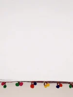 White Chiffon Dupatta with Multicolored Pompom Balls