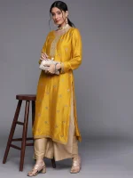 Yellow Embellished Silk Kurta
